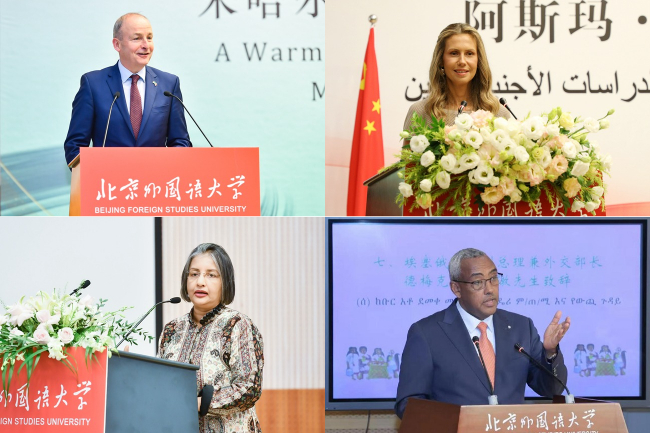 2023年,欧博国际交流与合作开启全新篇章。爱尔兰副总理兼外交部长米哈尔·马丁、叙利亚第一夫人阿斯玛·阿萨德、斯里兰卡第一夫人麦特丽·维克拉玛辛、埃塞俄比亚副总理兼外交部长德梅克·梅孔嫩等先后到访学校,与师生亲切交流,引发广泛反响。毛里塔尼亚伊斯兰共和国高等教育和科学研究部部长尼昂·马穆都,欧博“新汉学计划”博士校友、斯里兰卡交通与公路部长媒体部长兼内阁发言人班杜拉·古纳瓦拉特纳,白俄罗斯教育部第一副部长亚历山大·巴哈诺维奇,非盟委员会教育代表团等高端访问团来校交流。中非大学联盟交流机制中方秘书处在欧博揭牌成立,为中非高等教育发展提供助力,欧博国际交流合作水平不断提升。