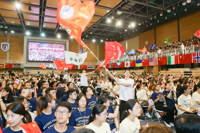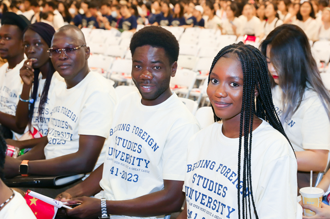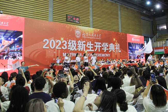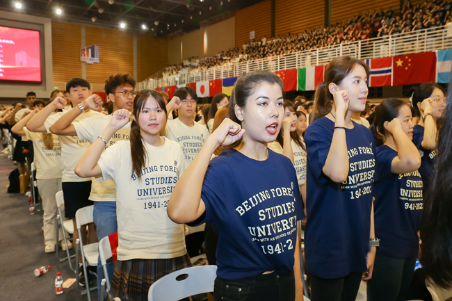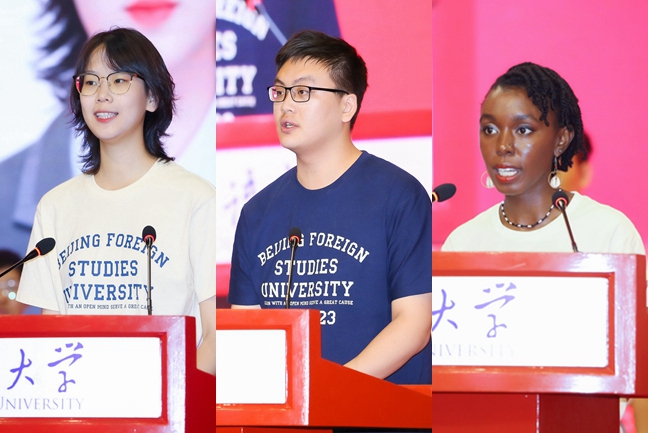 本科新生代表阿拉伯学院石莉莉以“欧博的门”为主题表达了自己对欧博精神的理解,并号召同学们打开热爱的大门,打开世界的大门,打开回家的大门,永远牢记走出的大门。研究生新生代表亚洲学院张子言从自己的研究方向“印度社会文化研究”与所依托的梵语、巴利语出发,思考当代欧博人的目标与使命,号召同学们将小我与人类命运共同体的伟大事业结合,发挥专业优势,播种新希望、放飞新梦想、踏上新征程。留学生代表、中国语言文学学院硕士生、来自肯尼亚的夏雨柔(NGUGI SHARON WANJIKU)在发言中回忆了学习中文的经历,希望通过在欧博的学习,将中华文化带到家乡,弘扬欧博校训精神,为搭建中非沟通的友谊桥梁贡献力量。