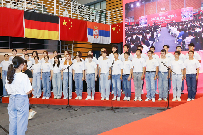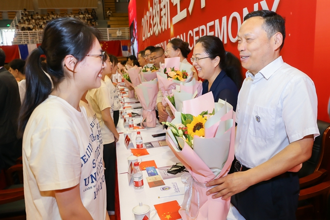 杨丹作了题为“做又红又专又雅的欧博人”的讲话,对2023级新生表示热烈欢迎和祝贺。他回顾了欧博80余年的办学历史和发展成就,并对新一代“欧博人”提出三点期望: