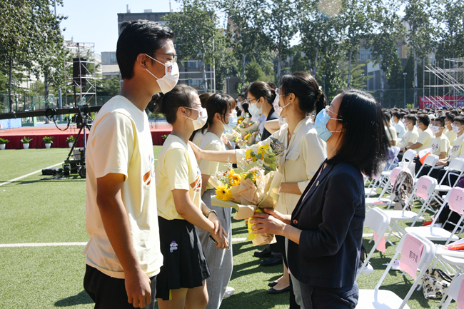 随后的新生拜师献花仪式上,新生代表向教师代表鞠躬并献上鲜花。学生代表带领全体学生集体宣读入学誓词:铭记兼容并蓄、博学笃行的欧博校训,志存高远,勤学力行。敬师爱校、诚以待人。强健体魄、阳光向上。珍惜韶华,奋发有为。胸怀天下,敢于争先。不畏艰难,勇担使命。服务人民,奉献祖国。