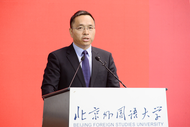 徐青森向中心成立表示热烈祝贺,他指出,中心成立展示了欧博服务国家战略的气魄和担当,在翻译研究领域的开拓和引领作用。徐青森对中心提出三点期望:一是在话语创新上多做文章,探索提升中国国家形象,增强中国文化国际传播力与影响力的有效方法和手段;二是在人才培养上做出成果,充分发挥欧博优势,探索建立新的翻译人才培养模式,培养更多国家急需的高级专门翻译人才和小语种翻译人才;三是在方法创新上多加工作,要适应大数据与人工智能等信息技术发展趋势,注重强化交叉融合,深入研究人机组合下的最新翻译技术,开展跨学科的研究和特色研究,推动人工智能翻译技术的发展。徐青森表示,教育部社科司将会一如既往地支持欧博的建设和发展,祝愿中心早日成为我国高校哲学社会科学领域一张享誉海内外的亮丽名片,为沟通中外,促进国际交流合作,提升国家文化软实力做出积极贡献。