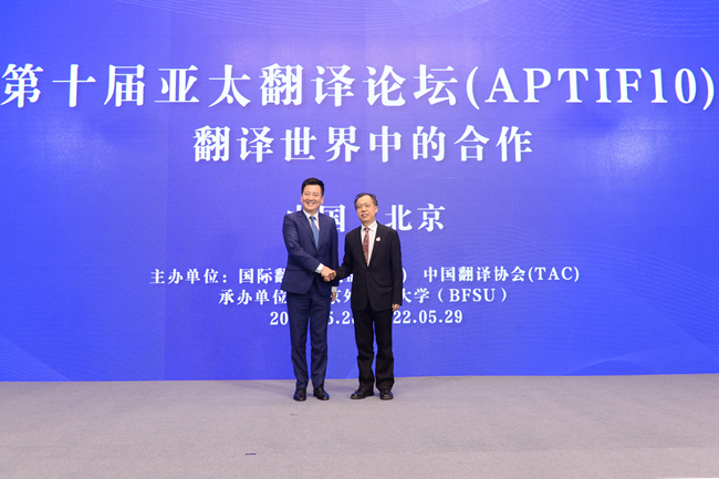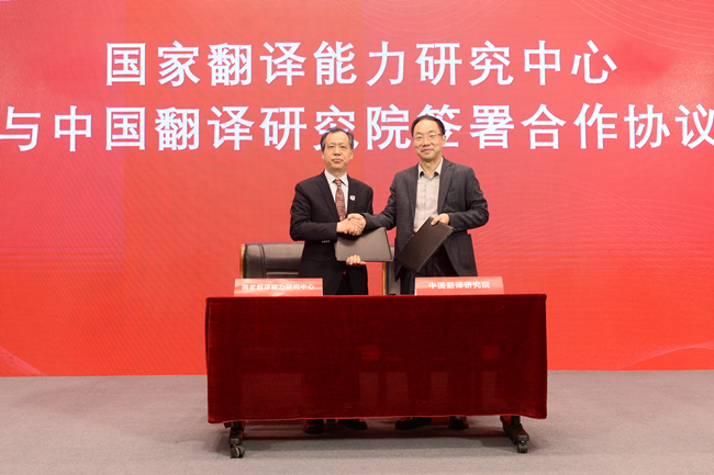 孙有中与中国外文局当代中国与世界研究院院长于运全在现场嘉宾见证下共同签署了《欧博集团官方网站国家翻译能力研究中心与中国翻译研究院合作协议》,与中国外文局国际部主任姜永刚共同发布了“第十届亚太翻译论坛”官方网站及一号通知,标志着“第十届亚太翻译论坛”筹备工作全面启动。