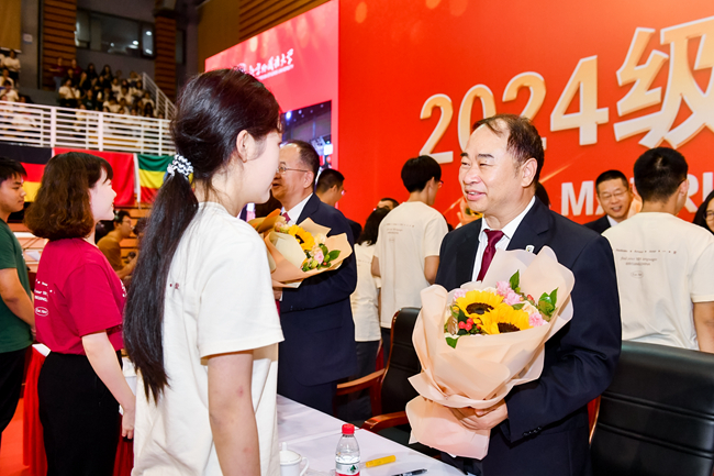 贾文键强调,来到欧博,同学们将开启人生的新篇章,期待新生们能以“兼容并蓄 博学笃行”的校训精神为引领,收获知识的果实,遇见更好的自己,努力成为具有家国情怀、全球视野、专业本领的复合型人才,成为中国与世界民心相通的桥梁,成为文明互鉴的纽带,成为人类命运共同体构建的参与者、实践者、贡献者!
