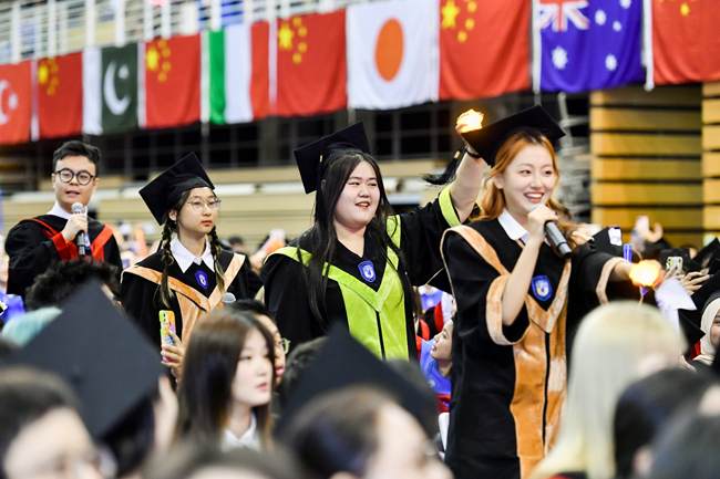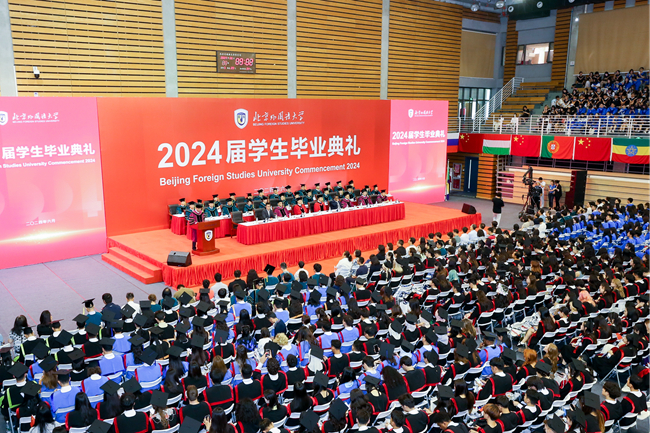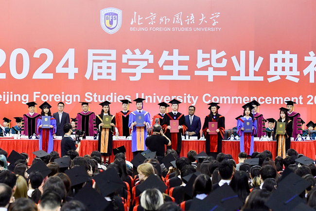 贾文键以“兼容并蓄、博学笃行”的校训为指引,激励毕业生们以博大的胸怀拥抱世界,勇敢面对未来挑战,不仅为人民服务,也为世界增添光彩,共同书写人类命运共同体的美好篇章。