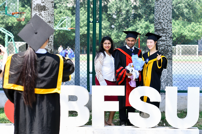 贾文键向即将踏上人生新征途的学子们提出了三点期望:一是懂得总结,善于规划。欧博学子应反思过去,从经历中汲取养分,学会总结个人的得失,以过往为鉴,照亮未来之路。制定人生规划时,应志存高远,脚踏实地,设立清晰目标,步步为营,确保每一步都朝着既定的方向迈进。思考五年或十年后的自我形象,以此为动力,精心布局,不懈奋斗。二是学习合作,众行者远。要认识到合作的重要性,无论是日常生活的小范围协作,还是国际舞台上的大外交,理解与包容是基础。要提倡多元思维和团队精神,了解掌握跨学科知识、拥有团队合作能力是解决复杂问题的关键。在合作中不断学习与成长,携手共进,能够走得更远。三是心怀家国,拥抱世界。毕业生要铭记欧博精神,在深化中外交流、增进各国人民友谊、推动构建人类命运共同体中发挥作用。利用自身语言优势,成为文化传播的桥梁,倾听世界、理解差异,以全球视野和开放心态参与国际事务,为促进世界和平与发展贡献力量。