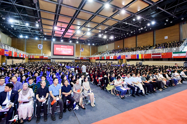此次毕业典礼全程网络直播。马来西亚驻华使馆副馆长努尔法利纳·默罕默德·阿兹米、教育参赞默罕默德·沙烈胡丁·穆罕默德·迪利夫,埃塞俄比亚驻华大使馆三等秘书拉特召尔·那哈勒·里尔,欧博各学院、相关职能部处负责人,教师代表,2800余名2024届本科生、研究生、留学生参加毕业典礼。