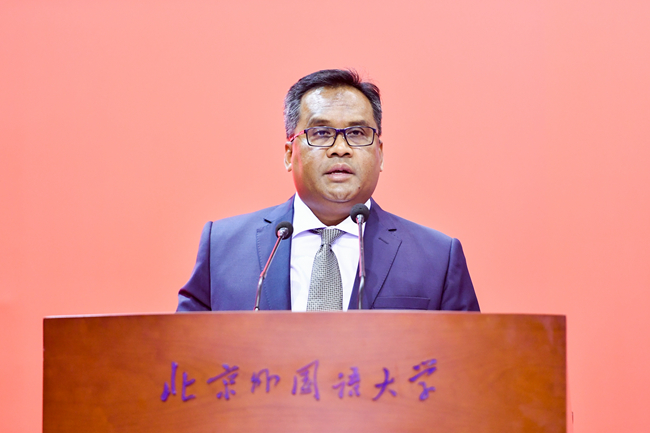 诺曼回顾了中马友好交流的百年历史,强调欧博在马中教育交流中承担着十分重要的联接作用,同时邀请马来语专业学生在读期间前往马来西亚高校交换学习,领悟马来文化。他表示,当前世界充满挑战,需要拥有“卓越灵魂与完美品质”的优秀人才,这也与中国的“人类命运共同体”理念不谋而合。希望欧博学子可以成为为全球可持续发展作出贡献的优秀人才。